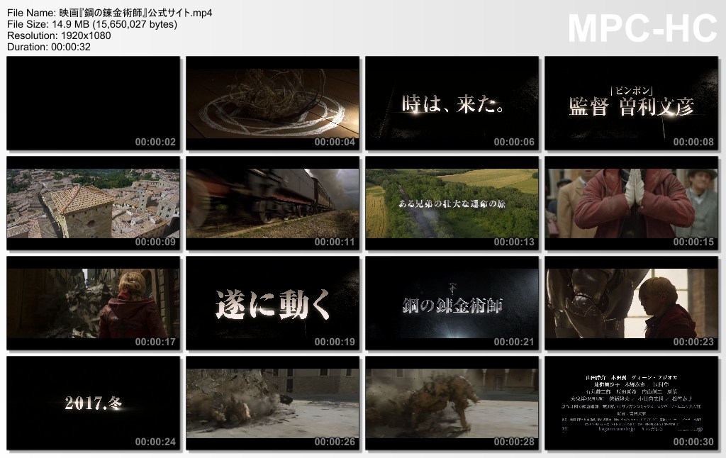 The official website for the live-action film of Hiromu Arakawa's Fullmetal Alchemist manga began streaming a teaser video for the film on Wednesday. The video teases iconic scenes from the story, and shows Ryōsuke Yamada in costume as the alchemist Edward Elric, as well as his little brother Al in full CG.